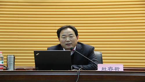 报告中,杜睿哲院长首先从依法治国的意义进行解读,他认为依法治国是执政党全面绘制“法治中国”建设的路线图,十八届四中全会对于通过全面深化改革,实现中华民族伟大复兴的中国梦具有至关重要的意义,对于法治建设和社会治理的现代化具有里程碑意义。其次就法治中国战略提出的国际、国内背景为大家做了阐述,并得出法治是社会治理的最佳方式。最后从创新依法治国目标定位,明确依法治国路径方向;系统依法治国的指导思想和原则,明确政治方向;创新法治体系,保障法律实施等十个方面为大家介绍了四中全会《决定》的亮点。