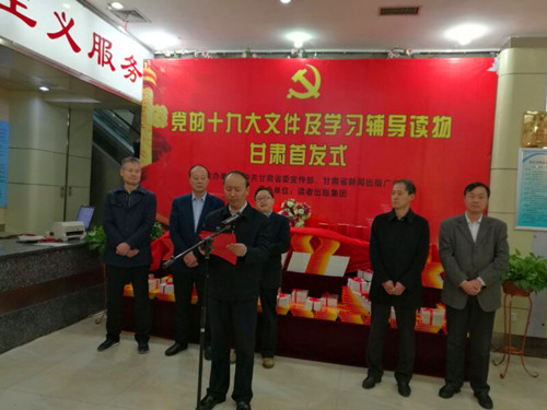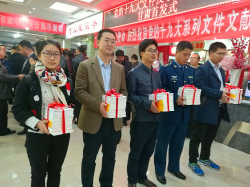 11月1日上午10点,“党的十九大文件及学习辅导读物”甘肃首发式在兰州西北书城隆重举行,省新闻出版广电局党组成员、省版权局专职副局长张亚杰,读者出版集团党委委员、读者出版传媒股份有限公司副总经理马永强、飞天出版集团董事长王卫平及其他各有关单位同志及读者200余人参加了此次活动。