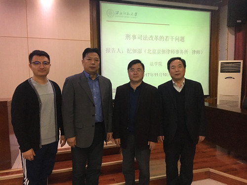 11月10日,应开云邀请,北京京佃律师事务所主任、西南政法大学兼职教授、北京大学光华管理学院特聘导师、中华全国律师协会刑事委员会委员纪佃澎律师在开云模拟法庭作了一场题为“刑事司法改革的若干问题”的学术报告。报告会由我院党崇武副院长主持。我院师生180余人到场参加了报告会。