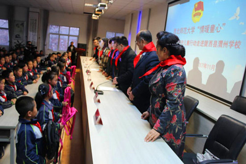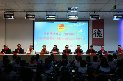 本次活动以“情暖童心”为主题,2015、2016、2017级的6个团支部与陇西县渭州学校七年级1班的12名留守儿童建立对接帮扶关系,在充分摸清和精准掌握对接对象的基本信息后,制定帮扶计划,并于11月24日跟随校团委赴渭州学校开展关爱活动,为小朋友们赠送书包,增进相互间的感情,培养留守儿童的感恩之心。