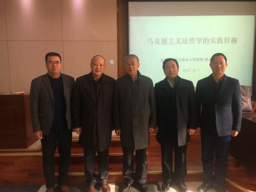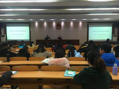 李其瑞教授在此次报告会中的内容主要包括:“马克思主义法哲学:一种从言说走向实践的理论体系”、“马克思主义实践法律观的基本内容”、“法学研究与马克思主义的实践哲学”。首先李其瑞教授介绍了法学研究对“实践问题”的关注,人们对社会、政治以及法律等“社会实践”或社会问题的关注和研究。对实践哲学的两重含义、马克思主义法哲学的实践旨趣的五个方面(对传统法律本体论的超越;摆脱了思辨哲学的困境,把法律认识归结为实践发展的产物;实践关注把法学从上天拉回到人间;提供了一种新的认识角度;在追求目标上的实践品格)进行了深刻阐述。其次,李其瑞教授讲述了实践法律观在马克思主义法哲学研究中的重要作用,详细论述了马克思主义实践法律观的主旨。最后,李其瑞教授运用国内外知名学者的观点,从实践的角度阐述了法学研究与马克思主义实践哲学之间的关系。