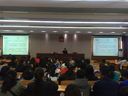 在报告会一开始,王勇教授向我们详细介绍了李忠主任的研究领域:宪法,党内法规,本次报告即是围绕这一研究内容展开。首先,李忠主任以国际上各政党发展现状为引介绍关于本次报告主题的一般性原理—什么是依法治国、什么是依规治党,并阐述了关于人治与法治的区别,法治的渊源以及我国我国党内法规的产生及发展。其次,李忠主任详细介绍了党内法规与国家法律之间的相同之处和主体、适用范围、效力、表现方式、实施方式及行为规范的要求这几个方面的不同之处,让我们深切体会到了这两各概念之间的异同。另外,李忠主任还介绍了关于统筹推进依法治国和依规治党思想提出相关内容。报告的第四项,讲述了关于为什么要统筹推进依法治国和依规治党,在分析存在的主要问题的同时提出了相应的改进建议和对策。在报告的最后,李忠主任还对在座的几位老师和同学提出的问题进行了耐性且详尽的解答。