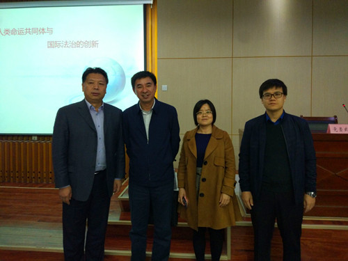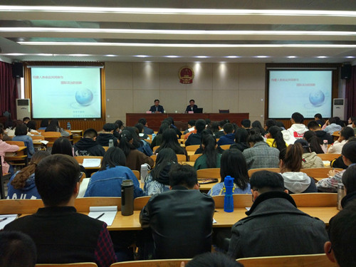 在报告会初始,李寿平教授对娱乐和学术如何平衡的问题发表了自己的见解。李寿平教授在此次报告会中,主要围绕人类命运共同体的构建与现代国际法治的创新与老师和同学们分享了自己的体会。李寿平教授首先从国际法与政治的关系的角度阐释了人类命运共同体在法学研究中的法律地位,他认为人类命运共同体是一种政治主张,而国际法与政治关系极其密切,故需在人类命运共同体中引领国际法的变革和发展,并且就国际法的变革过程得出现在国际法关注的问题是和平、安全、发展和人权。其次讲了人类命运共同体与国际法的交互影响,认为国际合作原则和国际强行法为人类命运共同体提供了法律基础,形成中的“对一切义务”原则为人类命运共同体提供了实施保障;而人类命运共同体将促进传统国际法主体理论的创新,丰富国家主权原则的内涵,发展不干涉内政原则;再次对人类命运共同体对国际法的创新上认为首先应该遵守《联合国宪章》框架下的国际法准则,创新现代国际法治基本理念,创新诸如人权保护,环境保护的国际法律制度。最后得出人类命运共同体不仅是推进全球治理变革的新方案,也是现代国际法实现向“共赢”变革的重要促进和保障的结论。