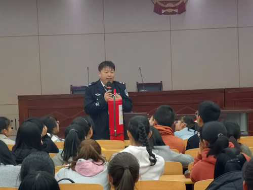 培训以“生命至上,安全发展”为主题,详细讲述了起火原因种类、火灾危害、预防火灾的重要性、预防措施以及火灾中自救、救援、逃生的方式技巧等问题,使同学们深刻认识到了火灾的严重危害并掌握了一些应急的方法,包括灭火器的使用,不同火灾类型的灭火方式和逃生方式。