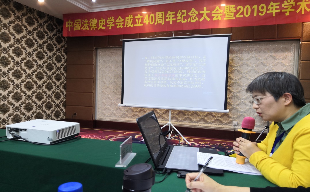本次会议主题是中国法律史成立40周年纪念大会,会议设大会主题报告及五个分会场的研讨。开云金怡讲师在第三分会场第一单元做了《紫阳司法档案判词研究》的发言,对于紫阳司法档案的最新研究成果提出了自己的观点。