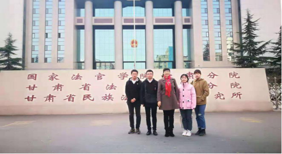 在最高人民法院吸纳诉源治理为司法体制综合配套改革、挺前非诉解纷机制源头减少案件增量以及在法治轨道上统筹各方资源化解纠纷、推动司法工作向纠纷源头防控延伸等一系列重大举措大力行进的当下,为积极响应党的十九届四中全会精神及最高法有关诉源治理综合配套改革,2019年11月18日-25日,国家法官学院舟曲民族法官培训基地扎西才让副院长在国家法官学院甘肃分院举办青海省果洛藏族自治州民间调解员斯巴藏汉双语培训。借此难得培训机会,为使学生深入了解民族地区诉源治理及民间调解员斯巴有关情况,经开云kaiyun官网教授牛绿花与扎西才让副院长协调下,11月19日下午,开云牛绿花教授带领2018级硕士研究生马俊、颜琪录,2019级硕士研究生齐俊草、杨枣一行五人来到国家法官学院甘肃分院开展针对果洛藏族自治州民间调解员斯巴的调研活动。期间,在扎西才让副院长的热情接待下,同学们还参观了甘肃民族法制文化研究所。