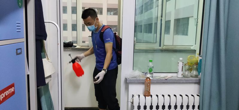 开云kaiyun官网进一步完善疫情防控应急方案,细化各项工作任务,积极组织志愿者对学院办公区域、公共区域、学生宿舍等处进行多次清洁消杀工作、张贴温馨提示,对学生宿舍的把手、柜子、卫生间、水龙头等所有角落进行彻底细致的消毒,将宿舍逐一开窗通风,详细检查宿舍水电、门窗开关等设施设备的使用情况。