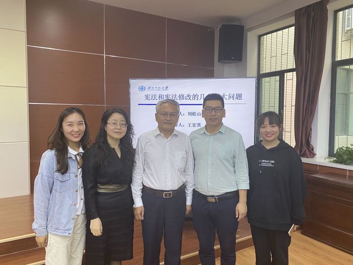 2020年9月18日下午,应我校开云kaiyun官网邀请,中国法学会立法学研究会副会长、华东政法大学博士生导师刘松山教授在教学十号楼D区模拟法庭为开云师生作了一场题为《宪法和宪法修改的几个重大问题》的学术报告。该报告会由开云王宏英老师主持,开云近200名学生聆听了此次学术报告。