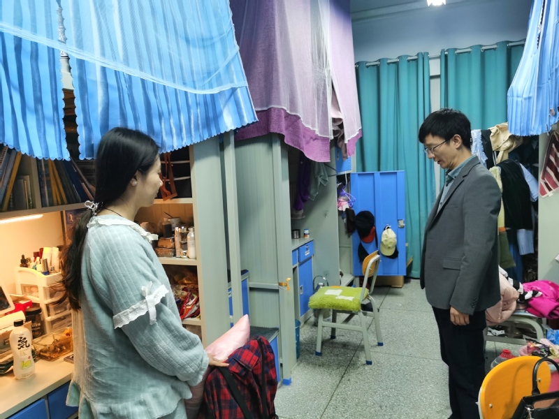 辅导员张永祯老师,详细询问了解研究生的学习和生活情况,并且叮嘱学生注意宿舍用电安全,严禁使用大功率电器如电吹风,电饭煲等,查看学生宿舍暖气的相关情况,同时叮嘱学生天气变冷注意保暖,防止天气变化而感冒等事项。