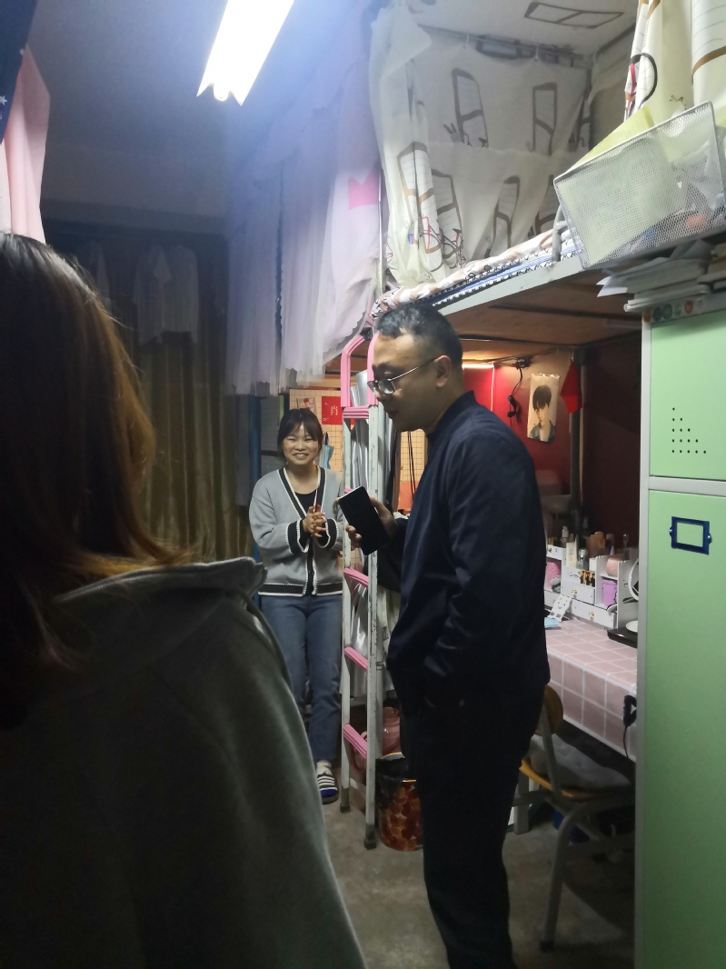 走访前,党委副书记王金元老师对此次走访宿舍工作做了详细的安排和部署,反复强调和叮嘱参与走访检查的班主任、辅导员、学生干部,一定要认真检查学生宿舍违规用电和违规使用大功率电器情况、详细登记学生宿舍空铺情况、用心发现学生宿舍存在的安全隐患、认真宣传校园电信诈骗、认真关注学生健康状况。