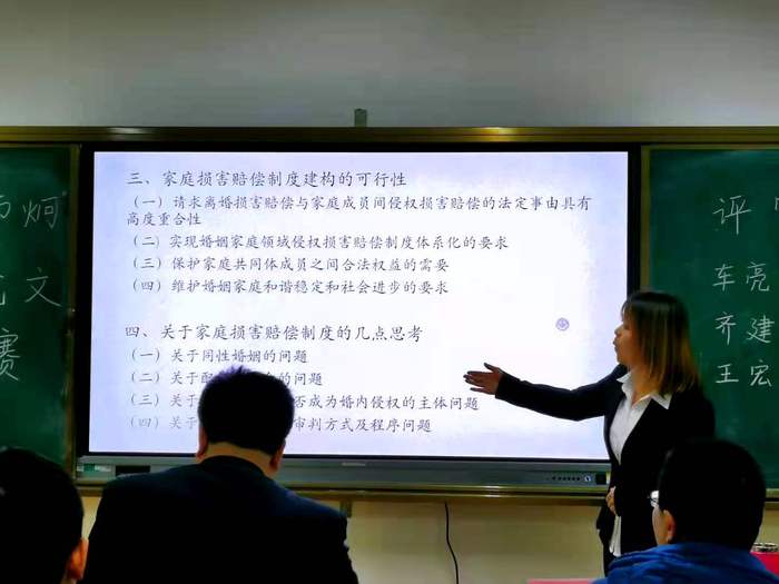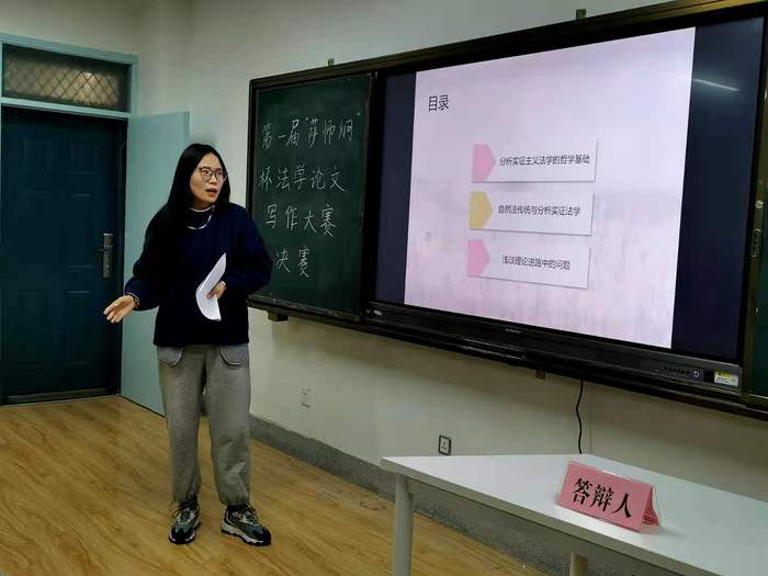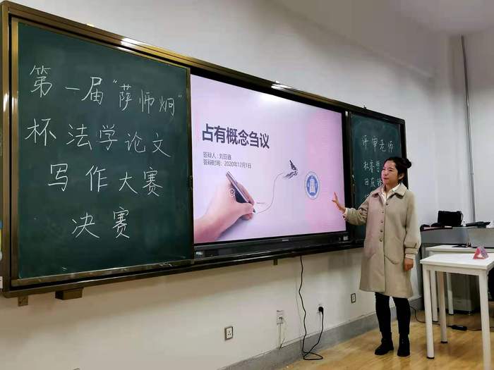 本次决赛的第一会场在301室进行,由2020级法律硕士李庆远同学主持,共七位硕士研究生进行了答辩。其中张育铭同学论文答辩的题目是《我国基础设施民营化的法律保障研究》,陈亮同学的论文题目是《论网络购物合同标的物风险转移》,梁福玲同学的论文题目是《家庭损害赔偿制度建构》,谢晖、高晨同学的题目是《破解民间艺术作品著作权保护困境的思考》,杜萌萌同学的论文题目是《地下车位权属的判定 》,法婷、何坤同学的论文题目是《超龄农民工法律权利保护问题研究》,姜亚贵、姚乔乔同学的论文题目是《论小产权房买卖合同中的法律问题》。