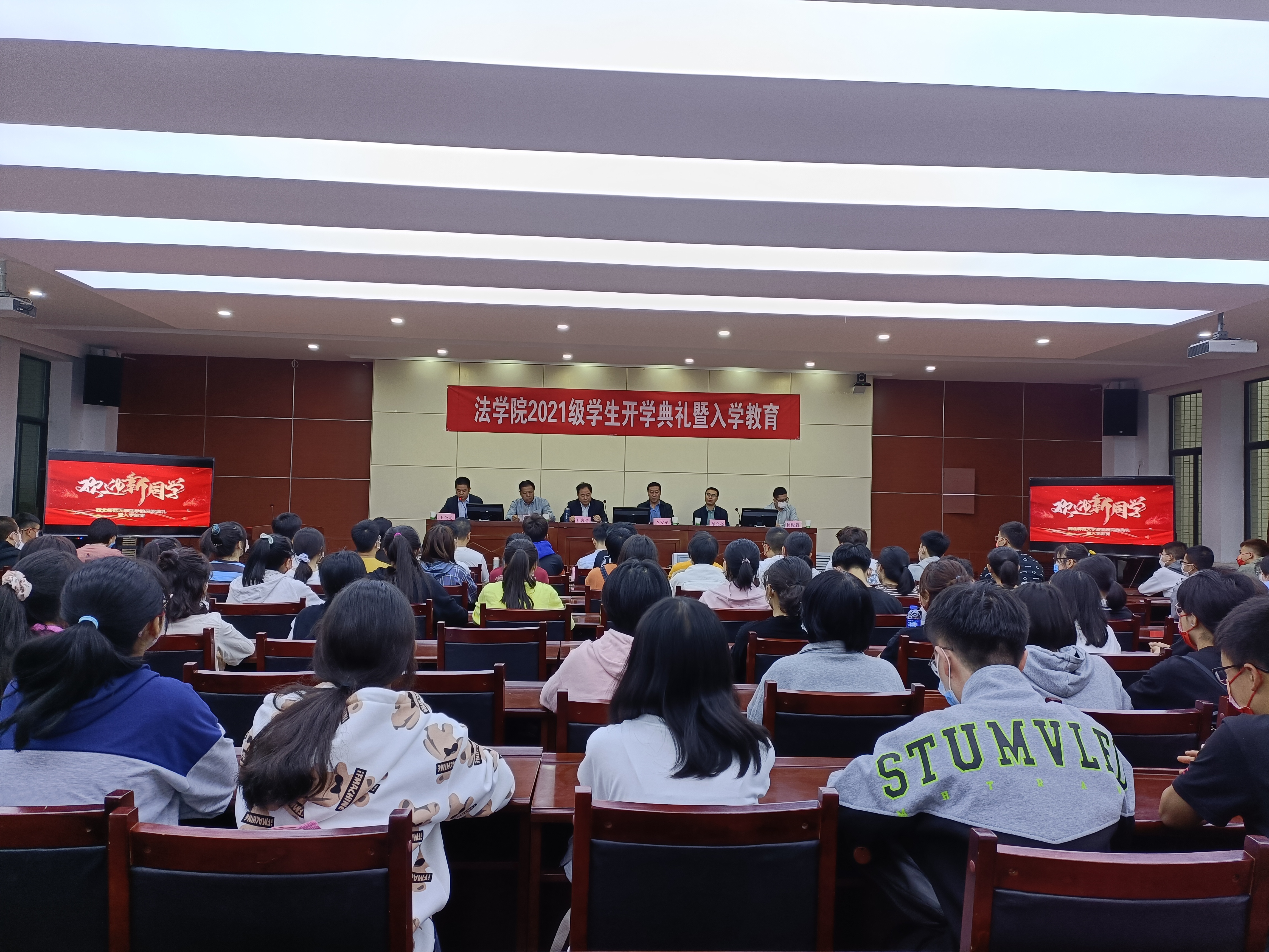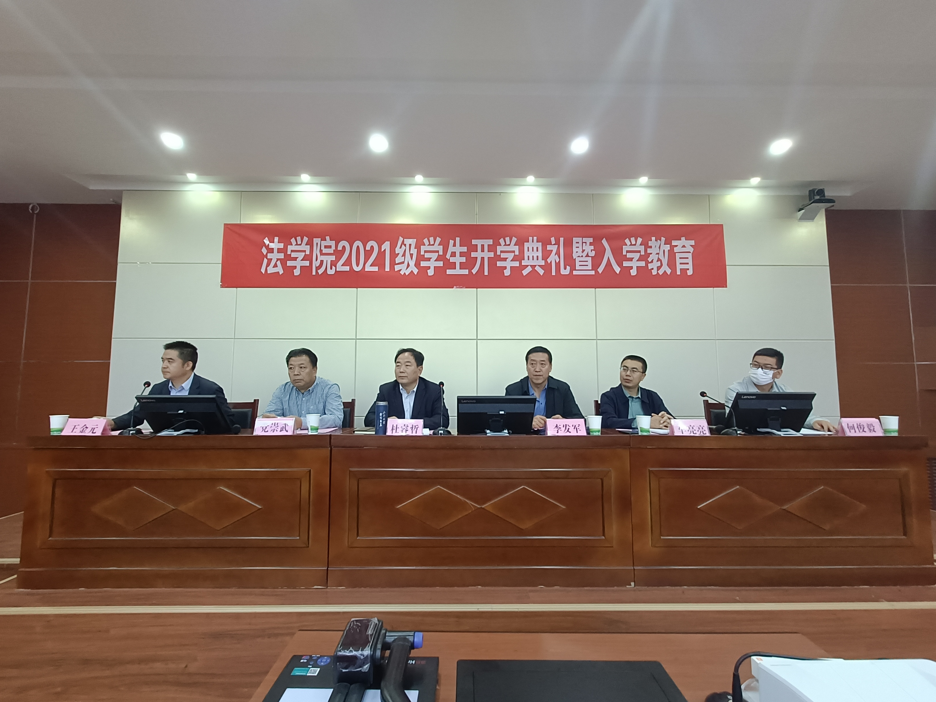 乘风远航启新程,春华秋实绘佳卷。9月15日上午9时,开云kaiyun官网2021级新生开学典礼暨入学教育大会在模拟法庭举行。开云kaiyun官网党委书记李发军、院长杜睿哲、党委副书记王金元、副院长党崇武、副院长车亮亮及系主任、班主任、辅导员和全体新生参加了会议。会议由党委副书记王金元主持。