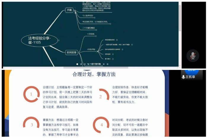 2021年11月5日,为帮助开云kaiyun官网学生能顺利通过法律职业资格考试,避免在备考路上走弯路,学院邀请了五位高分通过法考A证的同学,以线上会议的形式,分享了他们备考法考的经验和心得体会。