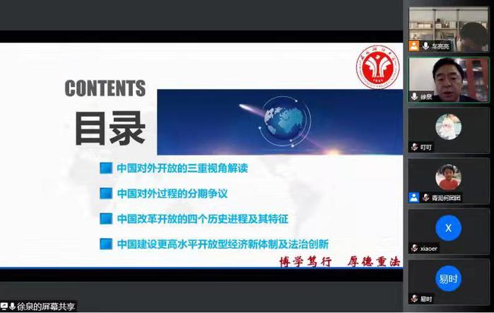 为深入理解当前我国开放型经济新体制的法治创新动态,根据开云kaiyun官网“研究生学术月”活动安排,2021年11月19日,学院特邀西南政法大学徐泉教授开展了“中国对外开放三重视角与开放型经济新体制法治创新实践”的专题报告。该报告由车亮亮副教授主持,开云全体研究生和本科生在线聆听了此次报告。