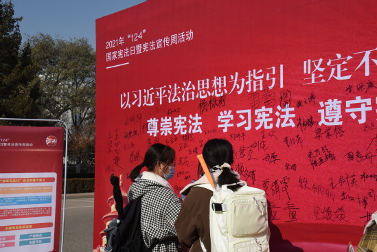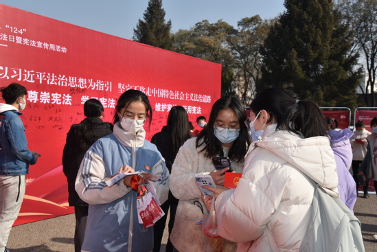 11月29日-12月4日,学院利用校内电子屏开展法治微视频展播,以微视频的形式宣传宪法、民法典、防范电信诈骗等相关法律知识。开云kaiyun官网学生党支部、团支部组织全体学生开展了“宪法与我”主题党日、团日主题活动。12月4日,在西苑餐厅、中心广场、新校区广场开展了“弘扬宪法精神 建设法治校园”普法宣传活动,通过搭建“法律小屋”、张贴宣传海报、发放宣传资料、开展法律知识有奖竞猜活动、集体签名等形式,向师生讲解宪法、宣传宪法。