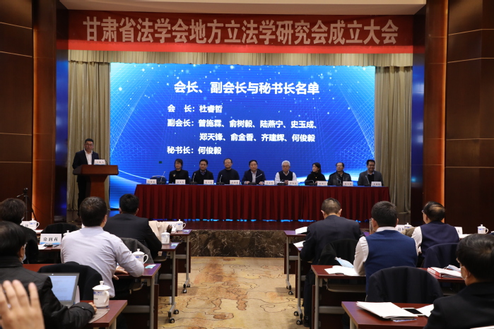2021年12月10日下午,甘肃省法学会地方立法学研究会成立大会暨第一届会员代表大会在兰正式召开。中国法学会立法学研究会常务副会长兼秘书长冯玉军教授在线上参会并致辞,甘肃省人大常委会法工委主任李高协、甘肃省司法厅副厅长焦旭红、西北师范大学党委常委、副校长韩高年、甘肃省法学会秘书长曹军利及众多专家学者出席会议。