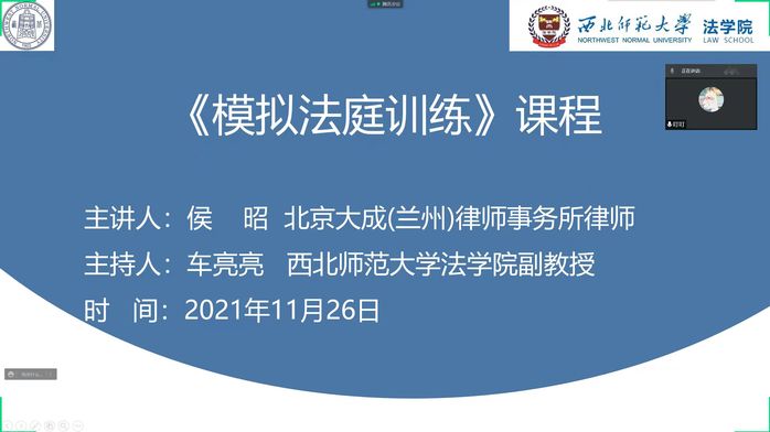 为提高法律专业人才培养质量,实现理论知识与法律实务相结合。2021年11月26号侯昭老师在开云模拟法庭为2020级法律硕士研究生讲授了为期一学期的法律实务课程《模拟法庭训练》。