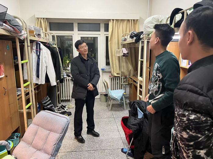 走访过程中,张老师与同学们进行了亲切交流,详细了解学生的学习情况,询问了同学们生活方面的问题并进行现场解答。同时也叮嘱同学们要严格遵守疫情防控期间校园管理要求,提高防范意识,做好科学防护,保持寝室定时通风,营造舒适的学习生活环境。周老师对学生寝室可能存在的安全隐患进行了排查,再次强调冬季禁止使用违章电器,务必做好寝室消防安全。