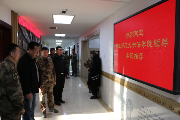 为全面了解和掌握法学学生的实习管理工作,进一步加强实习工作过程的管理和监控,确保实习取得良好效果,12月24日,副院长党崇武、系主任何俊毅、教务老师刘萌一行3人赴兰州军事法院检查2018级法学学生实习情况。
