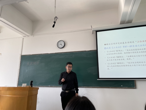 何俊毅老师首先回顾了上节课讲授有关的“立法程序”的内容,考察了学生对该部分内容的掌握情况。”然后通过《最高人民法院关于适用〈中华人民共和国民法典〉时间效力的若干规定》切入“立法效力”主题,通过典型案例讲授了上位法与下位法、新法与旧法、特别法与一般法的效力关系,重点对立法中法的溯及力问题进行讲解。何老师将将立法效力相关理论知识与典型案例和《最高人民法院关于适用〈中华人民共和国民法典〉时间效力的若干规定》相结合,组织学生进行小组研讨,使学生对立法效力相关的理论与实践问题有了深刻的理解。