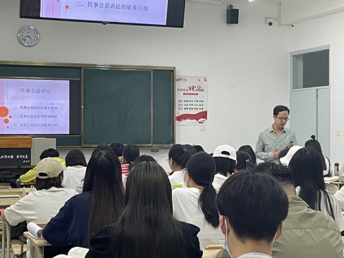 张国文老师授课内容为《民事诉讼法》第58条规定的民事公益诉讼制度。首先介绍了本次教学内容的具体安排,并解释了为何将民事公益诉讼制度的学习安排在一审程序之后,而非按照民诉法条的条文顺序于当事人制度中进行讲授学习。在授课过程中,张老师主要围绕民事公益诉讼制度的基本原理、民事公益诉讼的原告资格以及公益诉讼与私益诉讼的区别及公益诉讼的起诉条件内容进行讲授。重点通过介绍环境公益诉讼的原告范围、初步证据的内容及审查和检察院提起环境公益诉讼的立法与实践,使学生对课程内容有较为深入的了解。在授课时段的尾声,教师设置了简短的答疑环节,回答了学生对环保组织、相关行政单位以及检察机关等都具备起诉资格的情况下,提起公益诉讼时三者的优先顺位问题。授课结束后,教师与听课的专家及同事围绕本次授课内容进行了简短的讨论。